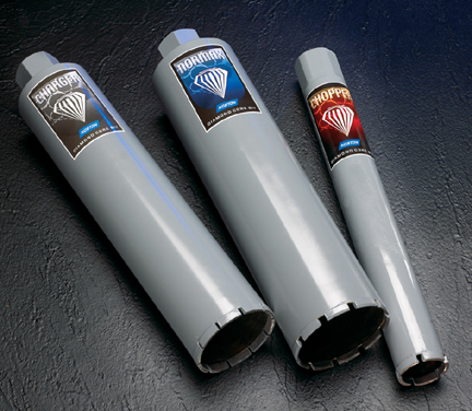 For wet coring in reinforced concrete with very hard aggregate. Also good for granite, marble, tile, glazed brick and other hard base materials with low abrasiveness. Use with all sizes and grades of rebar.
