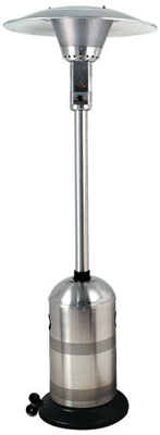 Heater Outdoor Radiant LP Steel 41,000 BTU's Covers 10' radius heating area Wheels included for easy mobility Safety anti-tilt switch Protective cover included Electronic ignition start switch Uses 20 lb propane tank (not included) For Outdoor Use Only