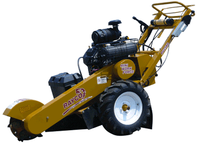Heavy Duty walk behind stump grinder from Rayco can handle stumps of all sizes. Self-propelled, hydrostatic, variable speed drive make it simple to move around. Kohler command 20hp gas powered engine. Always wear safety protection when operating stump grinders Weight: 583lb Fuel tank: 3 gallon Watch a video on this stump grinder @ www.raycomfg.com/rg25hdvdo.htm
