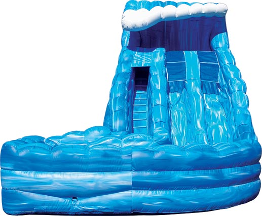 Catch a Wave!The Monster Wave is the ultimate in inflatable water slides with two lanes for side-by-side sliding while the riders whip around the curve and slide onto an inflatable landing mattress.