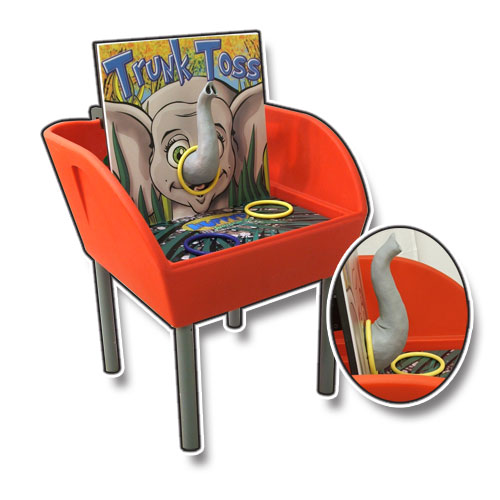 This elephant is ready to catch some rings!! Players toss large rubber rings in an attempt to ring the elephant's 3D plastic molded nose!!