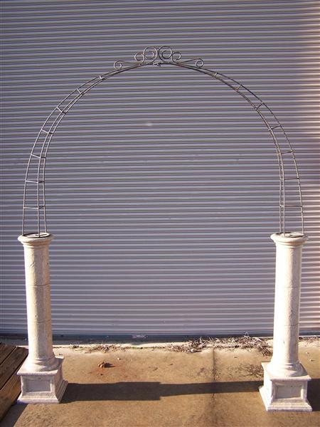 Single stone archway using two 47'' columns and metal arch. Can use your choice of columns gray stone or tan.